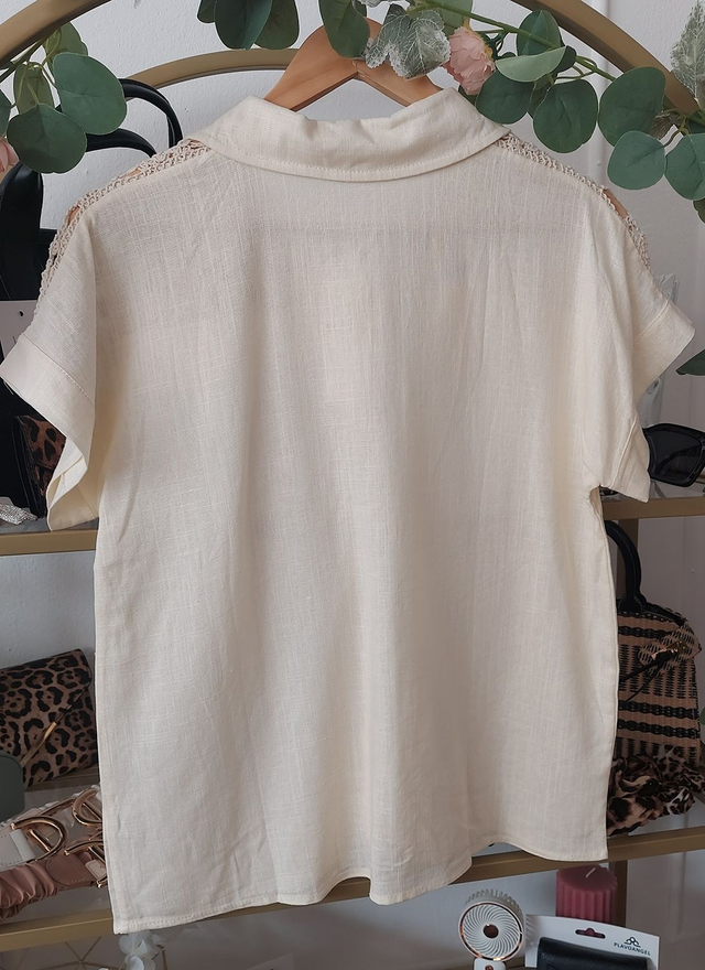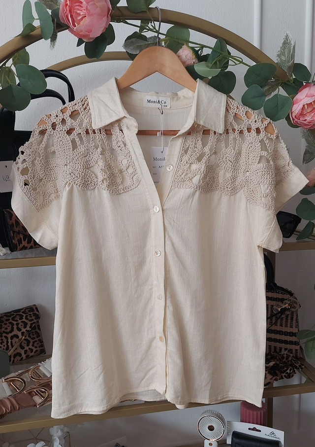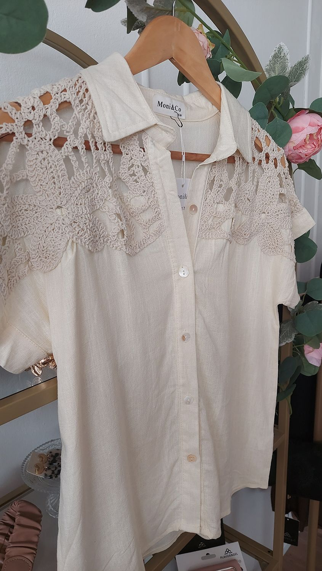 Bluse Vanille mit Häkel Schultern S/M L/XL