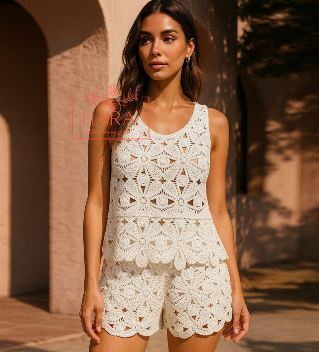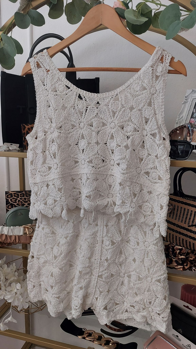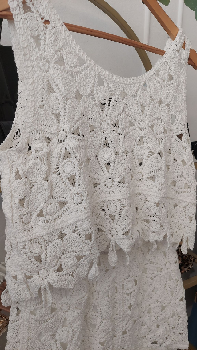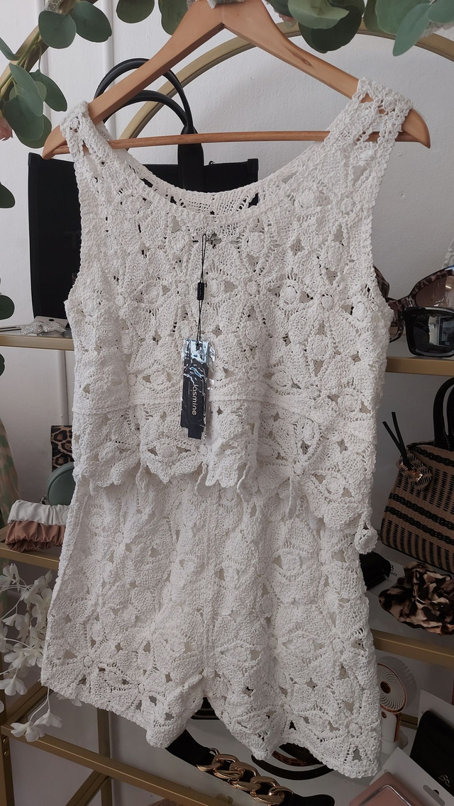 Häkel Zweiteiler in weiß Gr S/M L/XL