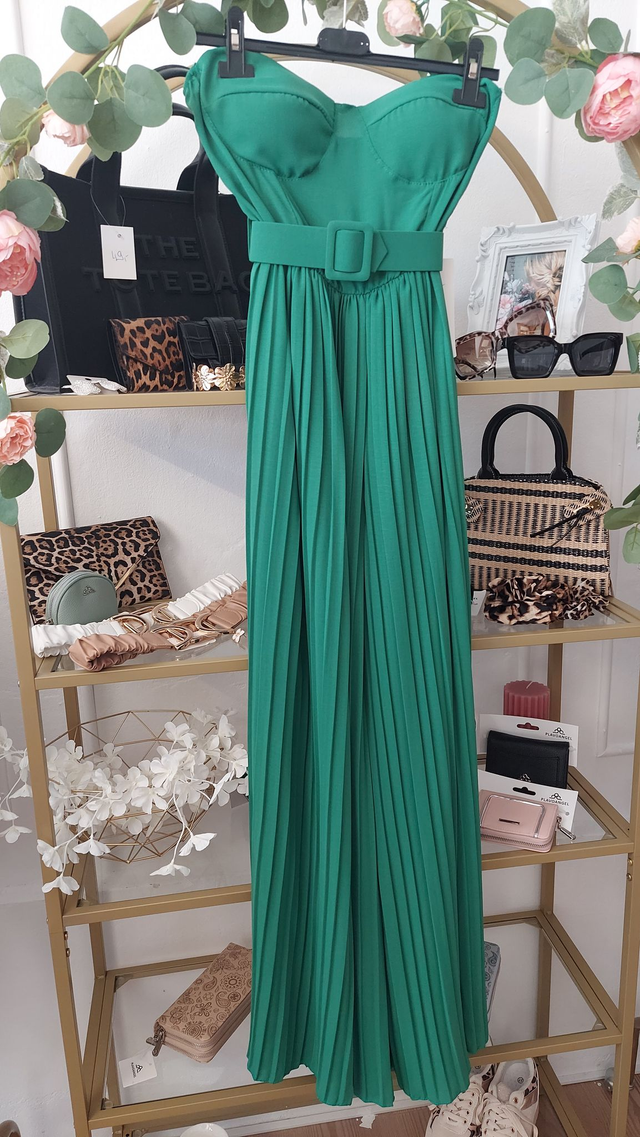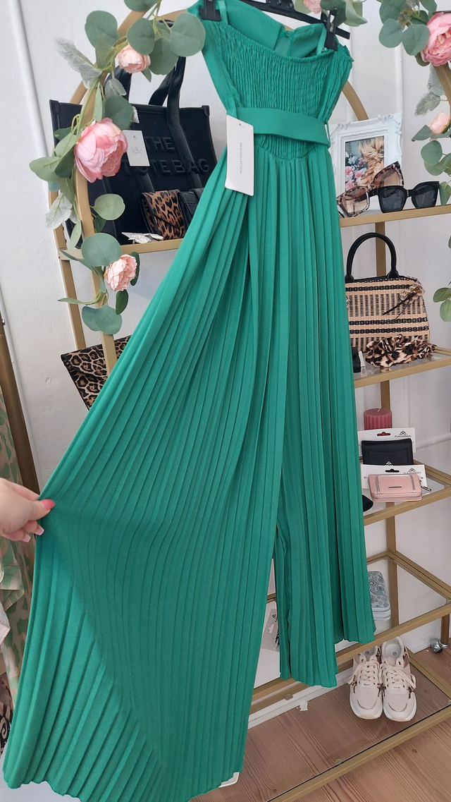 Jumpsuit Grün mit Plissee und Gürtel Onesize
