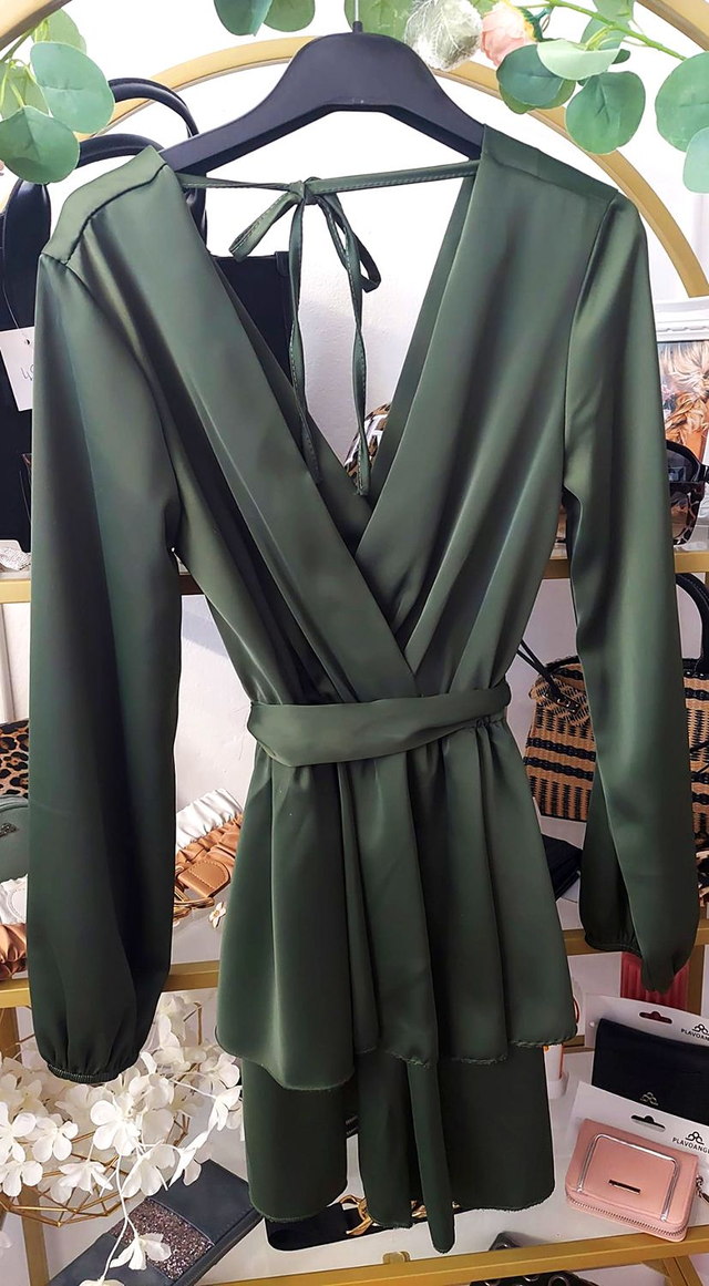 Jumpsuit im wickel Look mit Schlaufe oliv Onesize