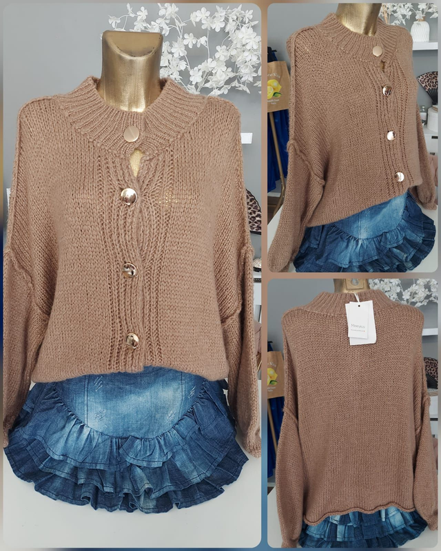 Kuschel Strickjacke Oversize Onesize Zitronen braun