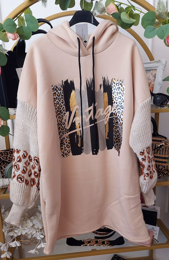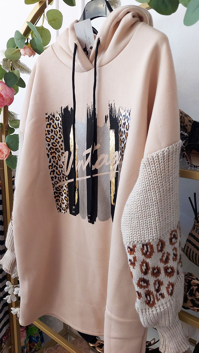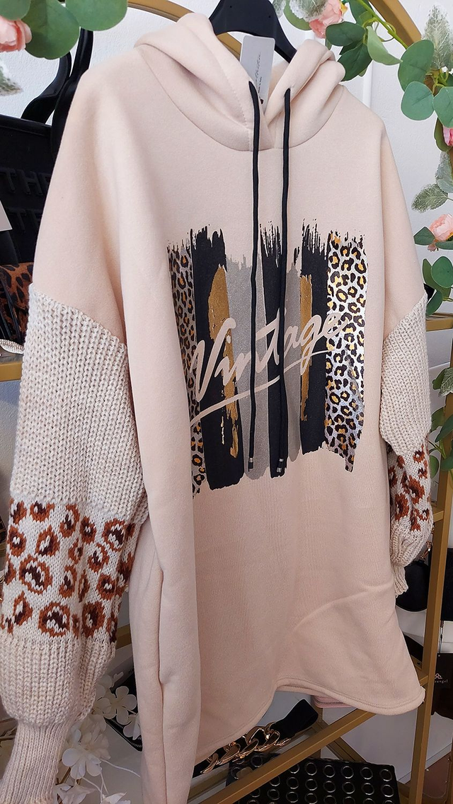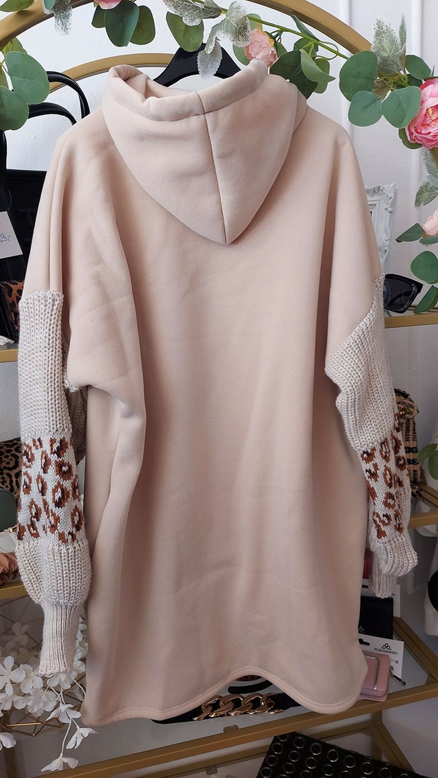 Abgesetzte lange Ärmel in Strick mit Leo Muster