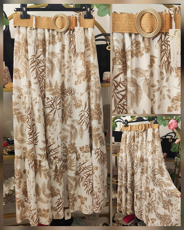 Langer Sommer Rock mit dazu gehörigem Gürtel in beige