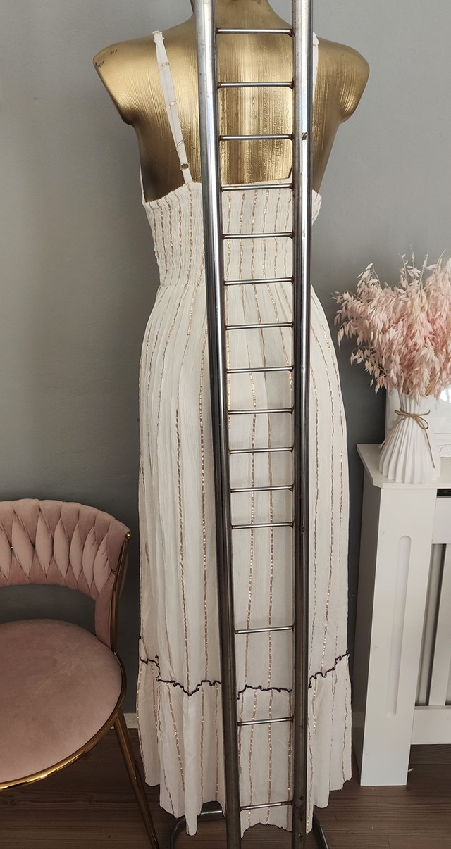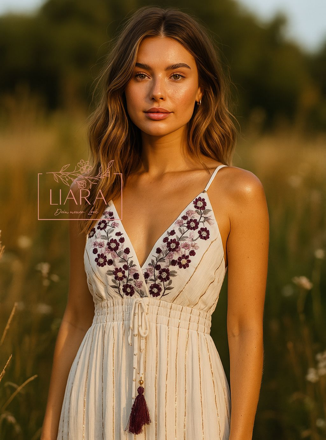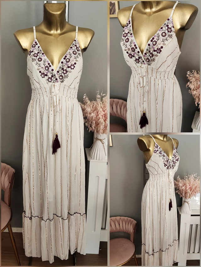 Maxi Sommerkleid mit violetten Blüten am Dekollete Onesize