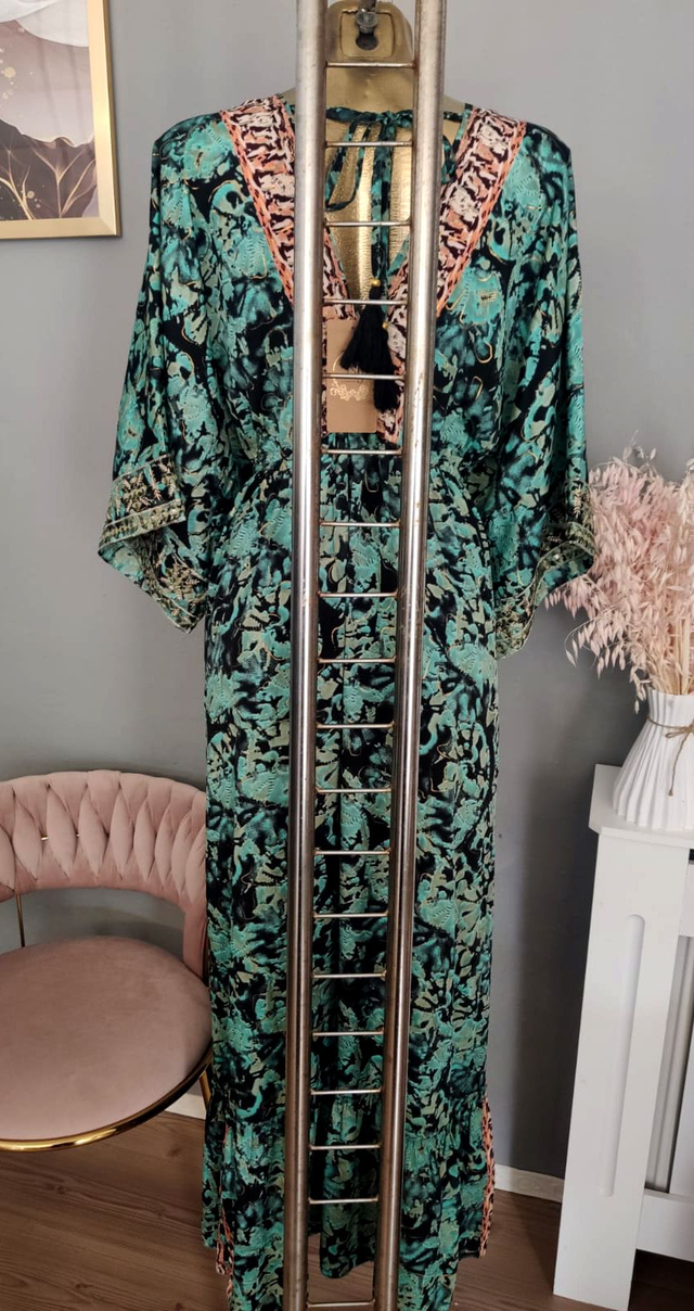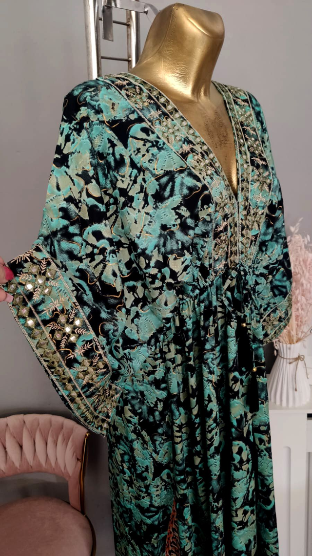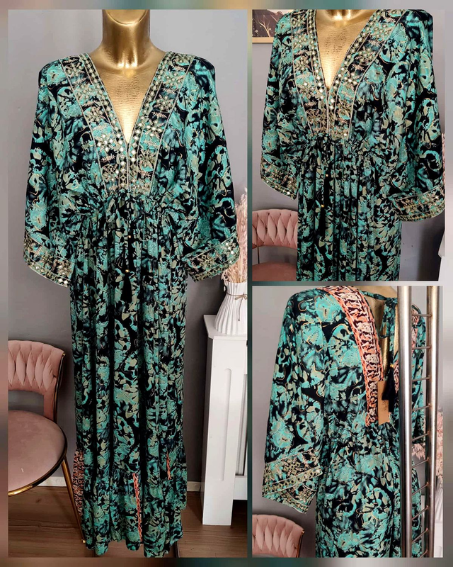 Maxi Tunika Abendkleid türkisgrün schwarz Onesize