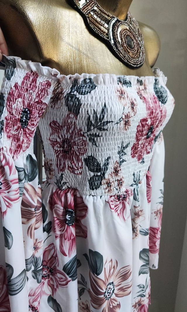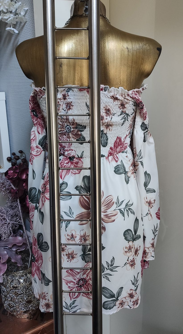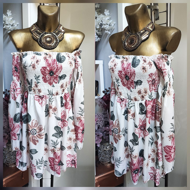 Schulterfreies Kleid Kurz Blüten Print Onesize