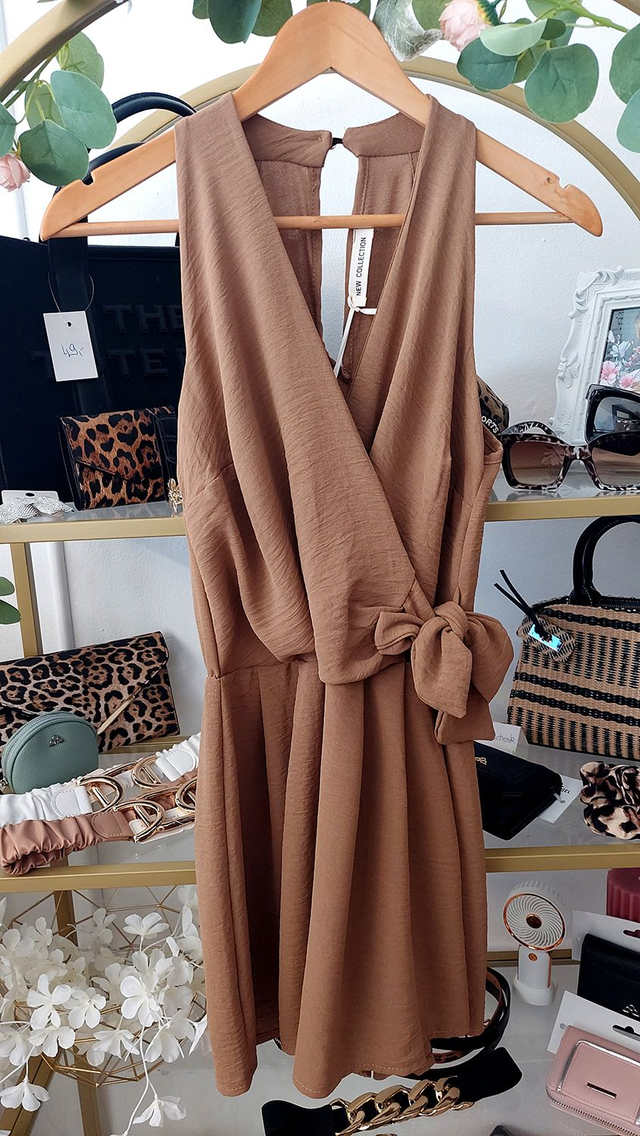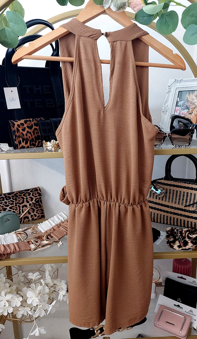 Sommer Jumpsuit braun mit Wickel look und Schlaufe Onesize